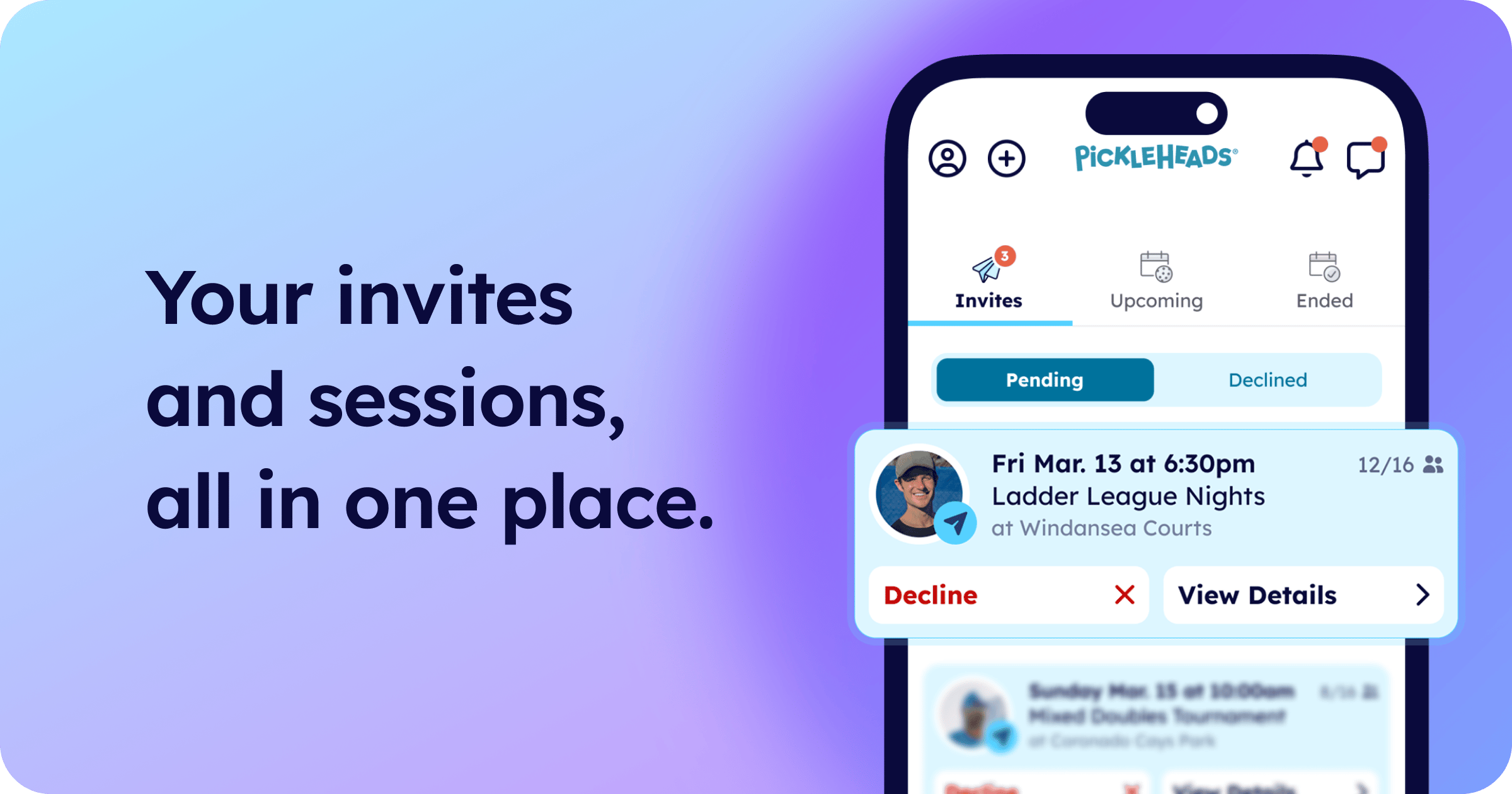 Invites: Manage all of your pending and declined invites in one place.